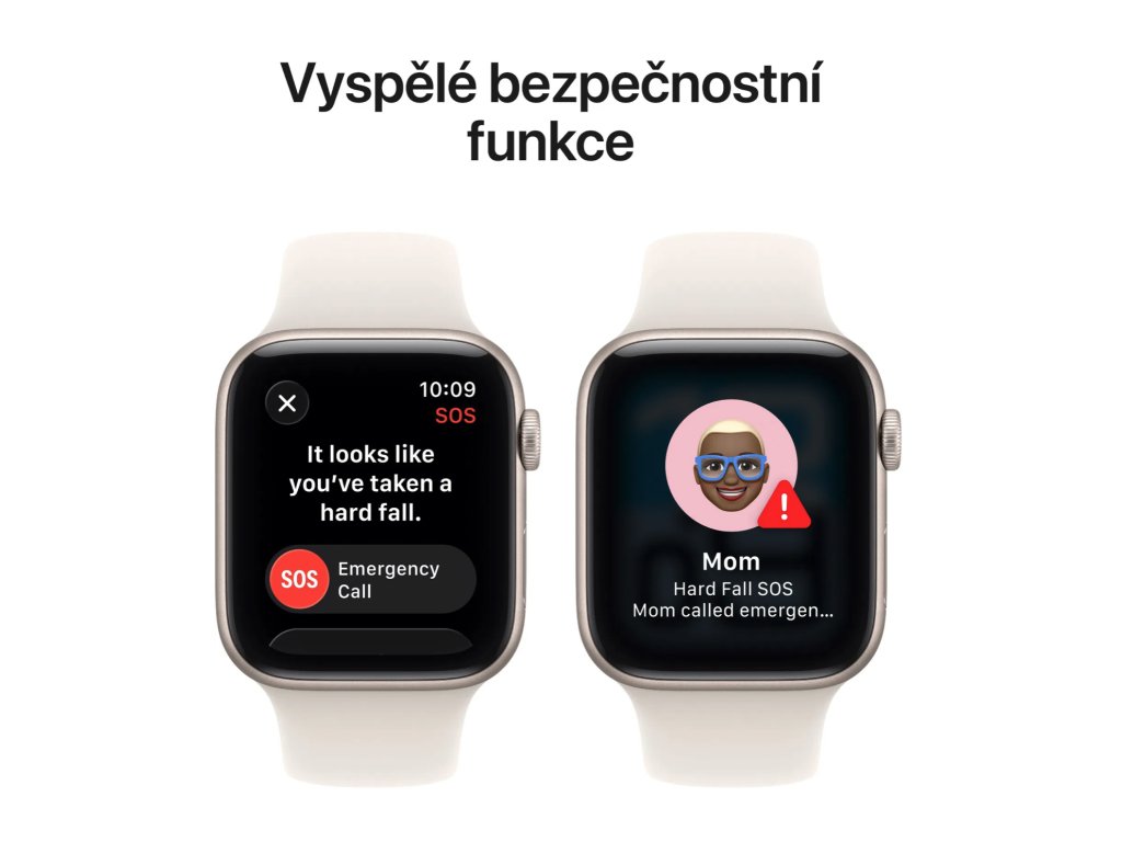 Detekce prudkého pádu a autonehody s automatickým voláním záchranné služby a upozorněním nouzových kontaktů.