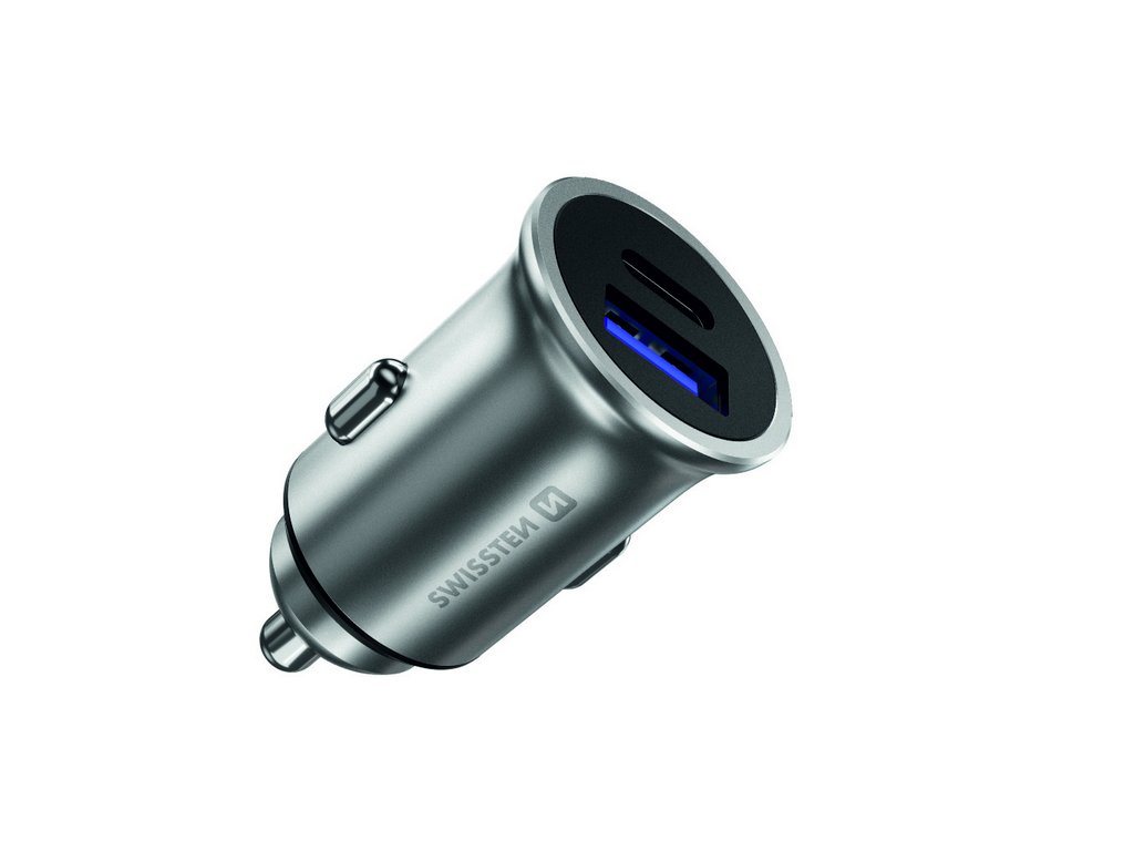 Elegantní metalická autonabíječka s celkovým výkonem 36W. Výstup USB-C je vybaven technologií POWER DELIVERY pro rychlé nabíjení smartphonů iPhone 8 a novějších. Výstup USB je vybaven technologií Qualcomm 3.0 pro rychlé nabíjení smartphonů s OS Android. Eko balení SWISSTEN.