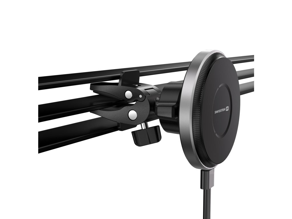 Díky silným magnetům a podpoře MagSafe pevně drží iPhone nebo jiné kompatibilní zařízení a zároveň ho bezdrátově nabíjí výkonem až 15 W (pro iPhone 7,5 W).