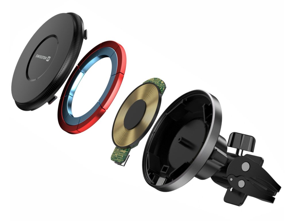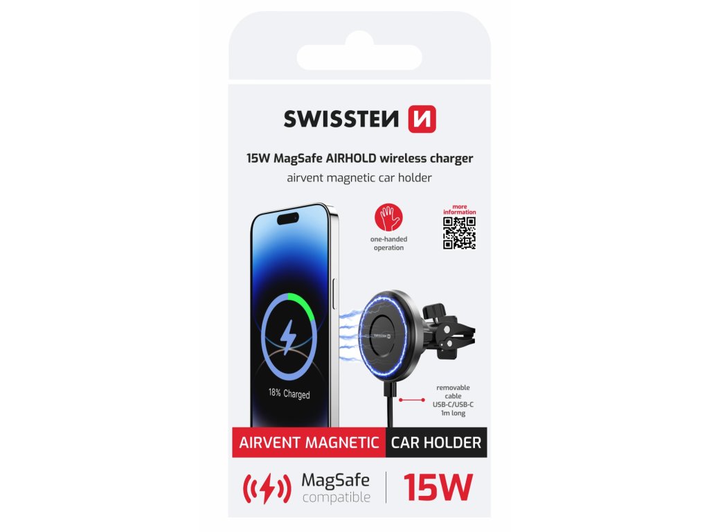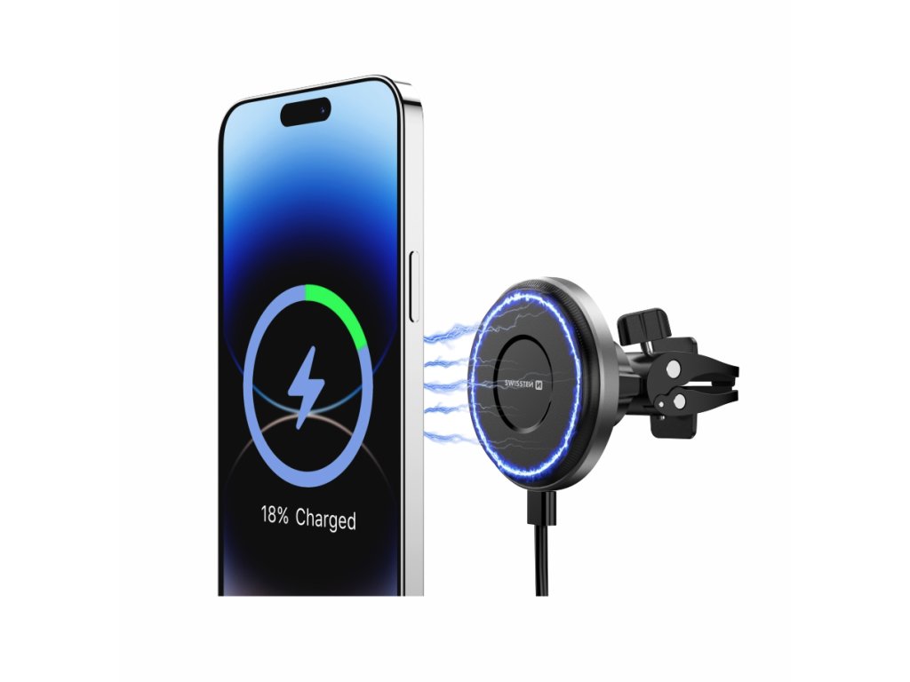 SWISSTEN MAGNETICKÝ DRŽÁK DO VENTILACE AUTA AIRHOLD S BEZDRÁTOVÝM NABÍJENÍM 15W / 7,5W (kompatibilní s MagSafe)