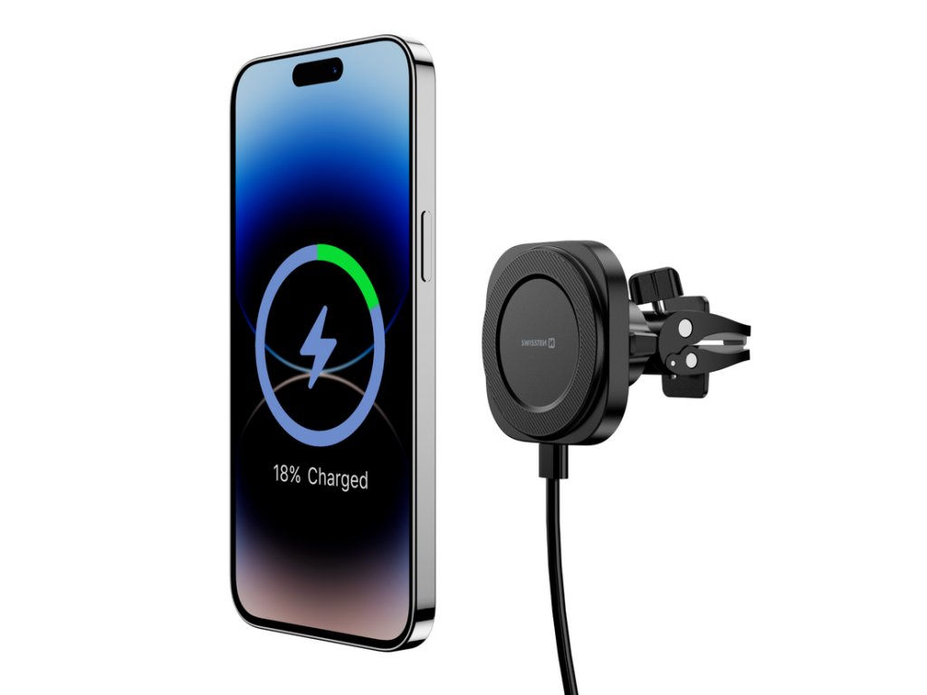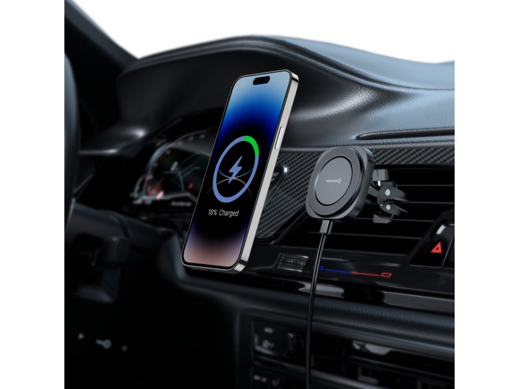 Swissten magnetický držák do ventilace auta s bezdrátovým nabíjením 15W/7,5W (kompatibilní s MagSafe)