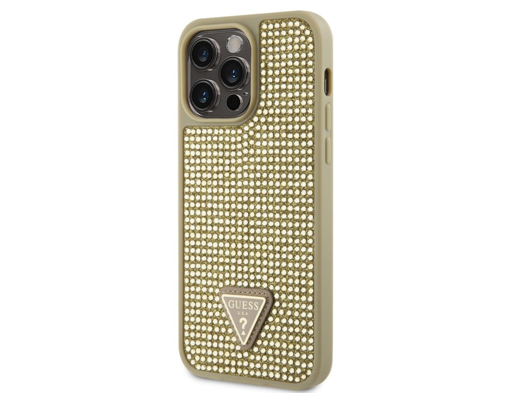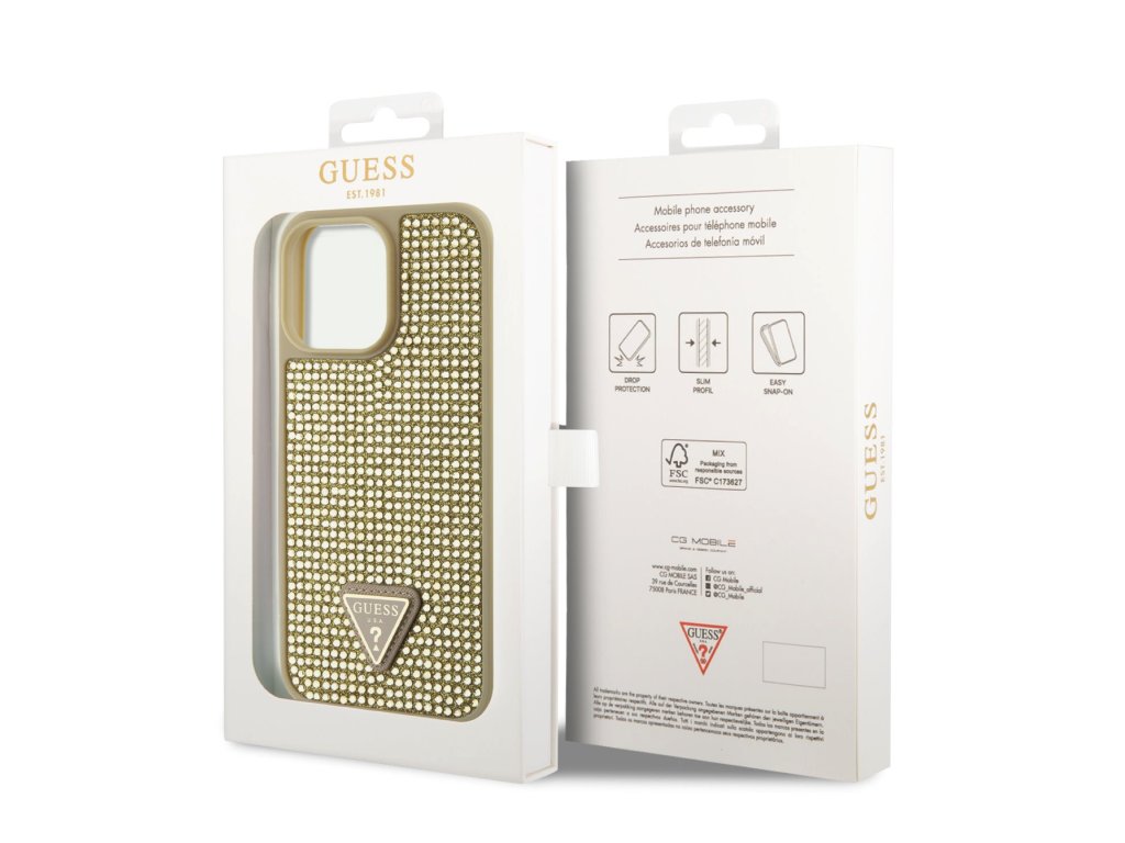 Guess Rhinestones Triangle Metal Logo Kryt pro iPhone 14 Pro Max Gold