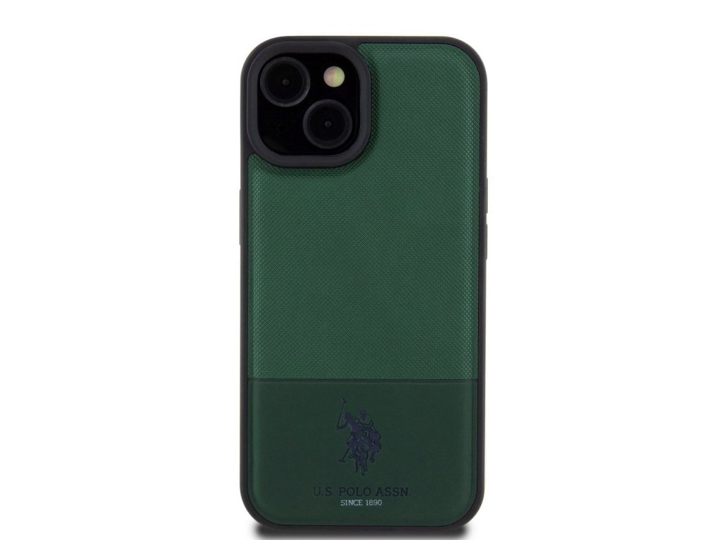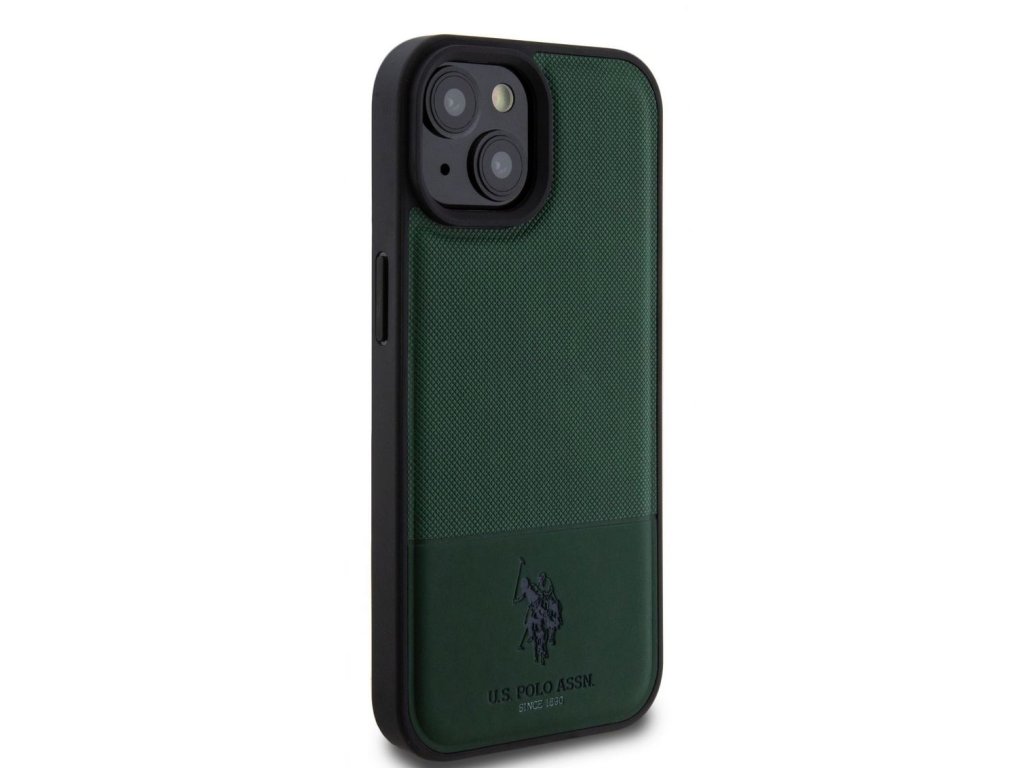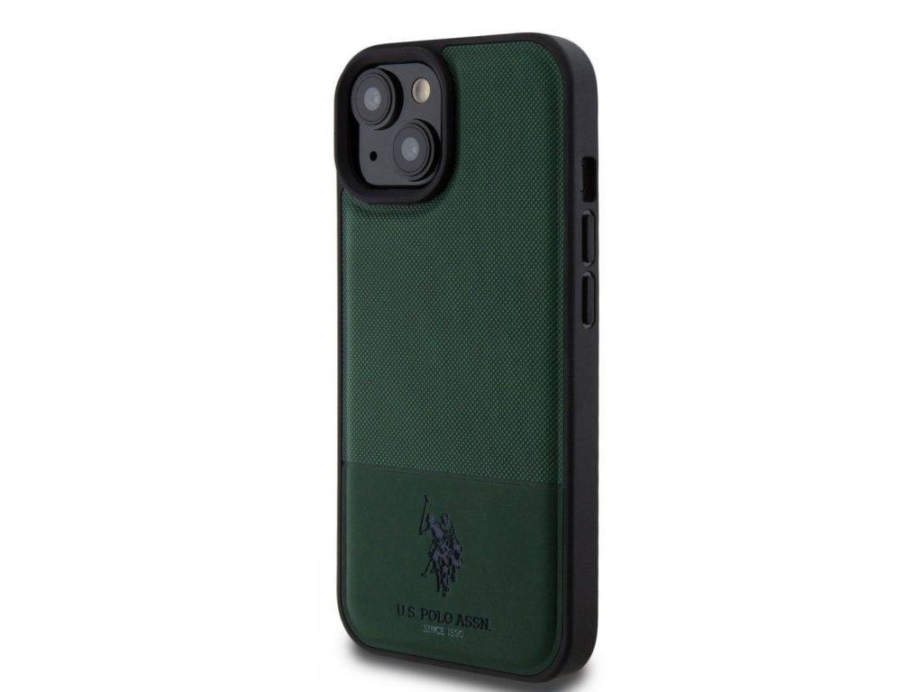 U.S. Polo PU Leather Mesh Pattern Double Horse Zadní Kryt pro iPhone 15 Green