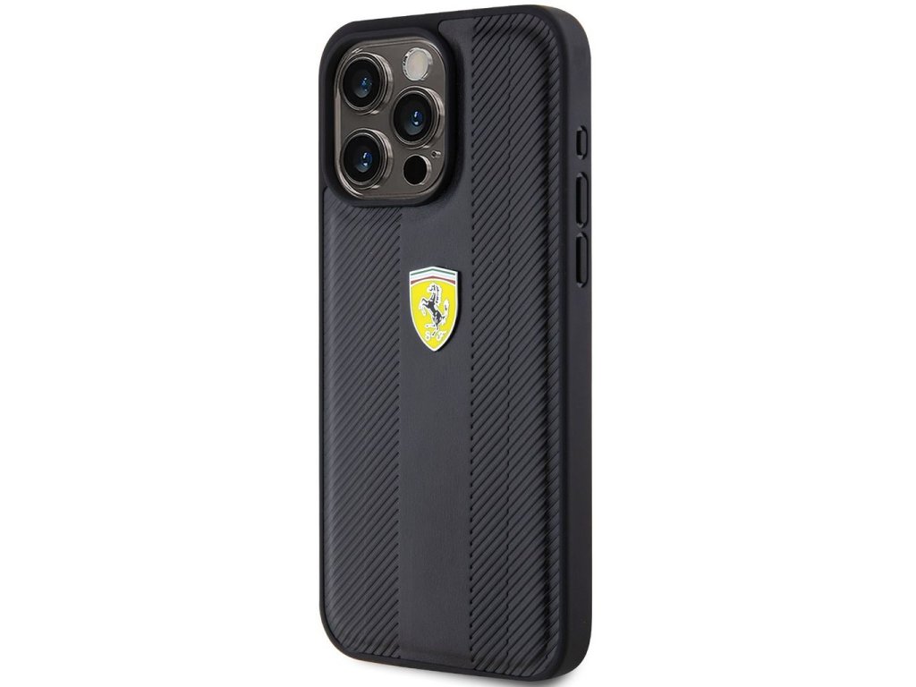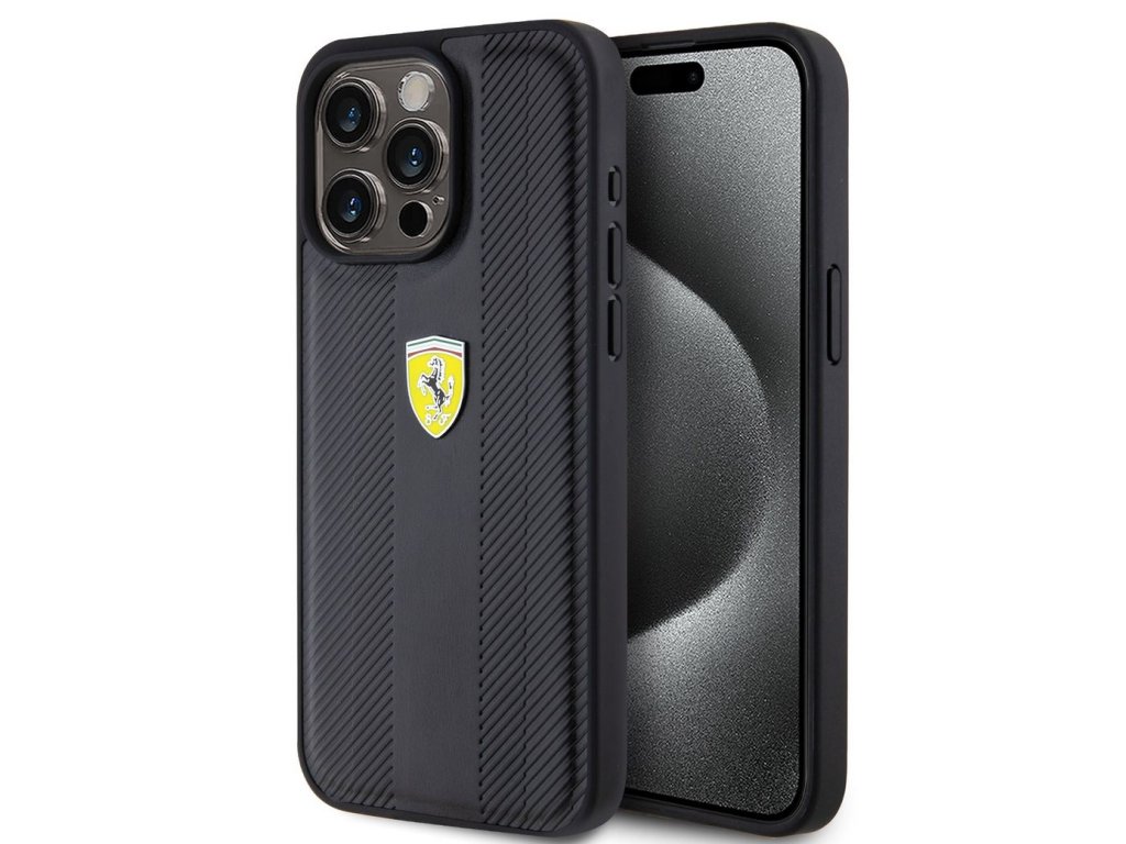 Ferrari PU Leather Hot Stamp Groove Pattern Zadní Kryt pro iPhone 15 Pro Max Black