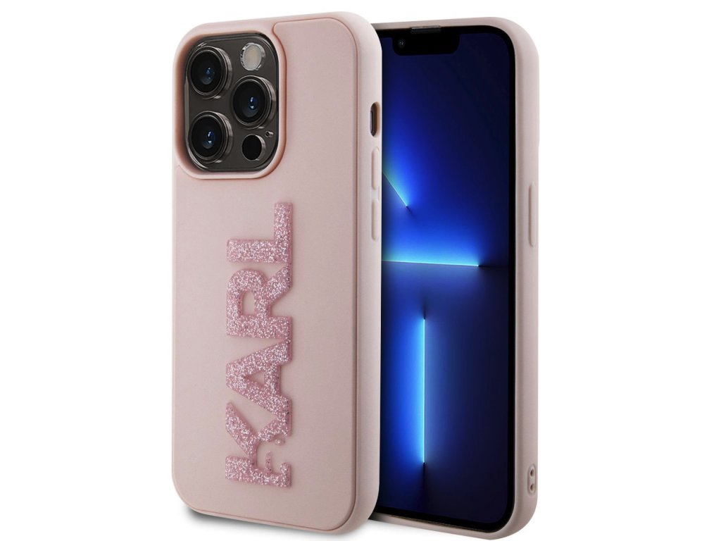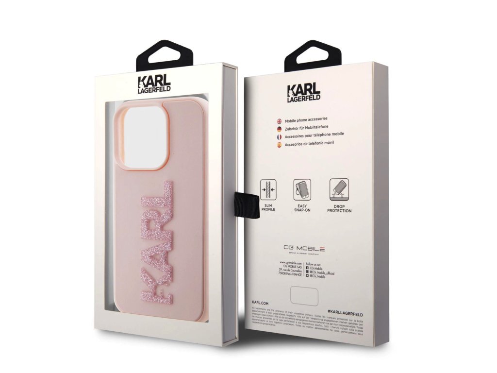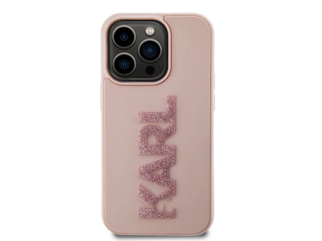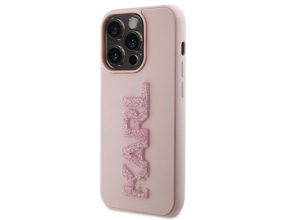 Karl Lagerfeld 3D Rubber Glitter Logo Karl Zadní Kryt pro iPhone 15 Pro Max Pink