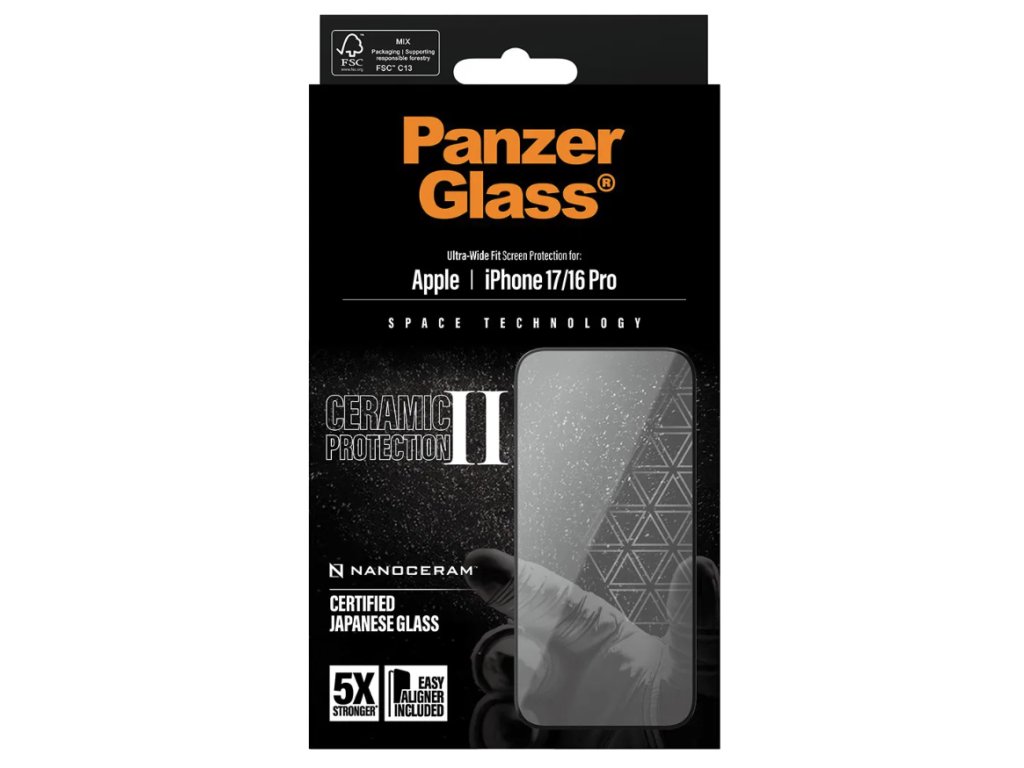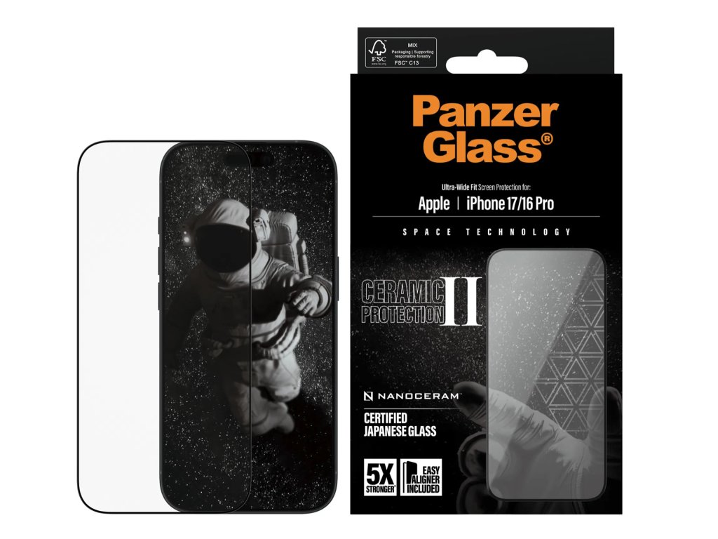 PanzerGlass Ceramic II ochranné tvrzené sklo pro iPhone 17/16 Pro s instalačním rámečkem