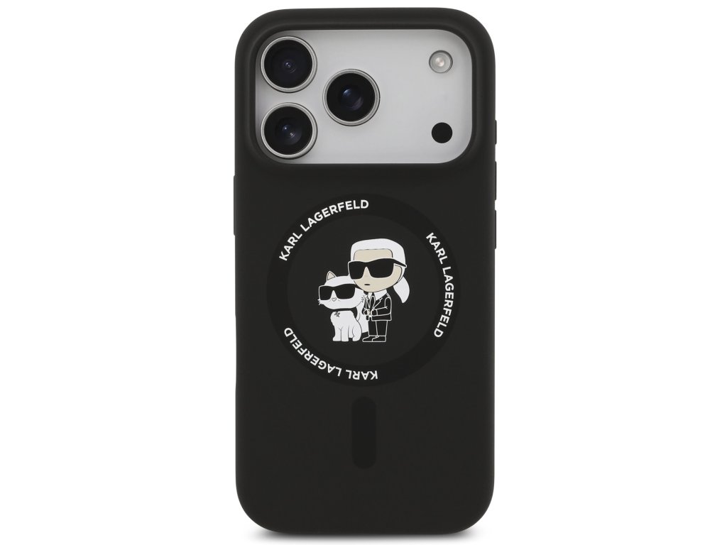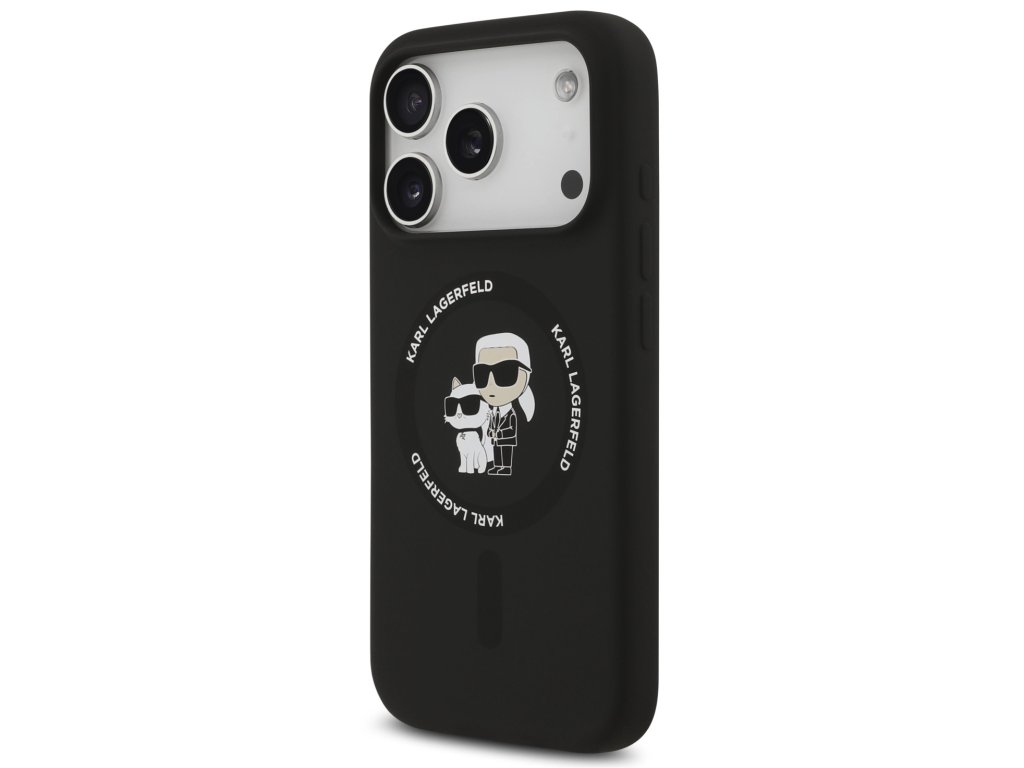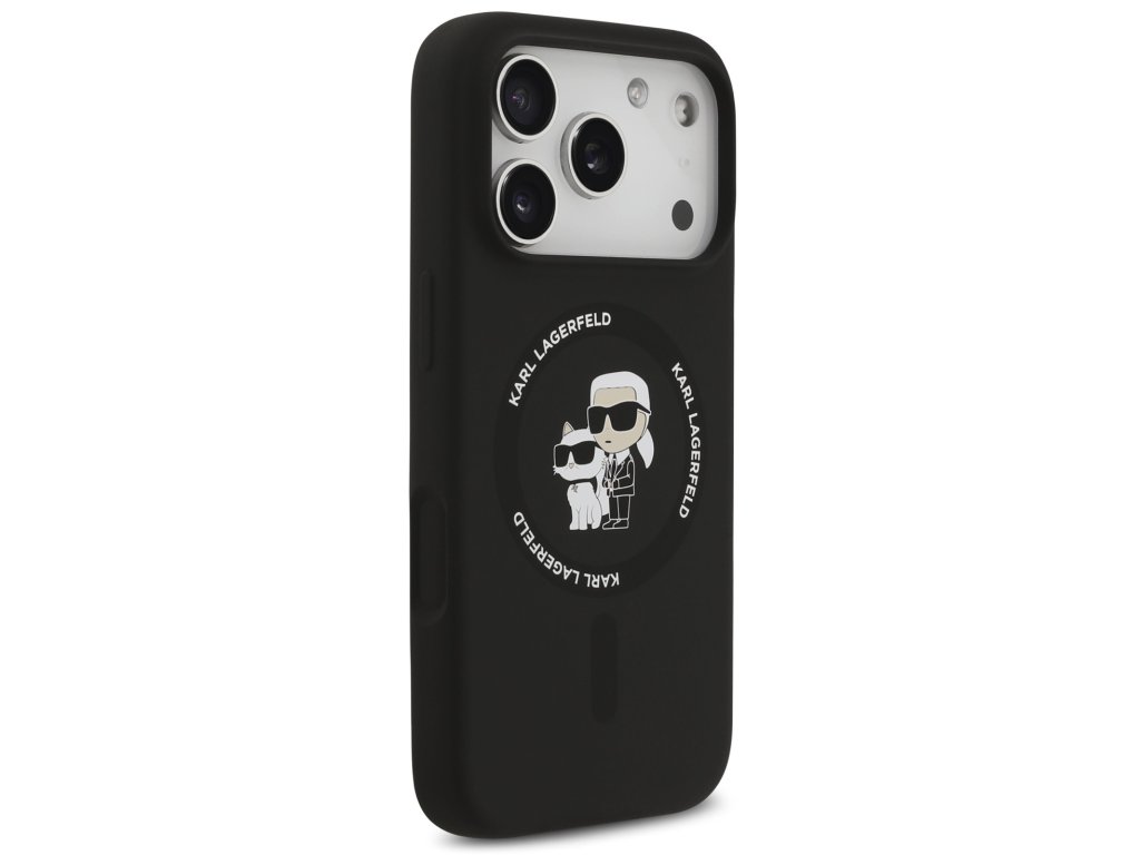 Karl Lagerfeld Liquid Silicone Karl and Choupette MagSafe Zadní Kryt pro iPhone 17 Pro Black