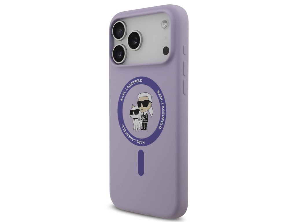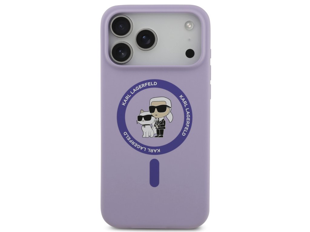 Karl Lagerfeld Liquid Silicone Karl and Choupette MagSafe Zadní Kryt pro iPhone 17 Pro Max Purple