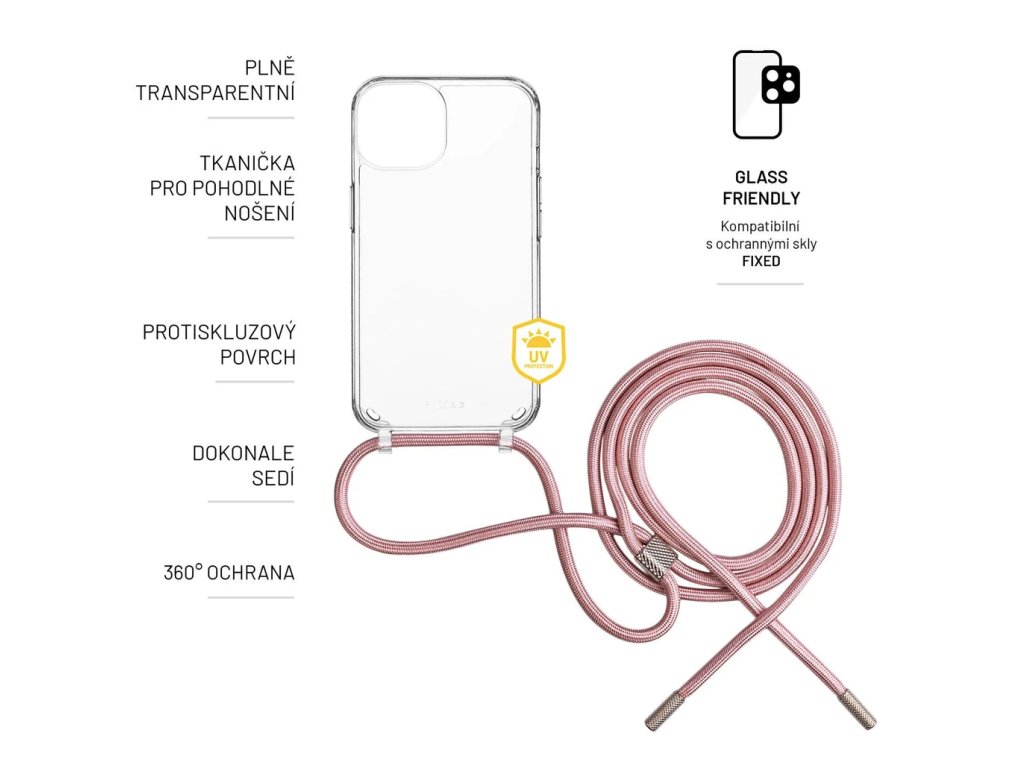 FIXED kryt Pure Neck s růžovou šňůrkou na krk pro iPhone 7/8/SE 2020/2022 Čiré