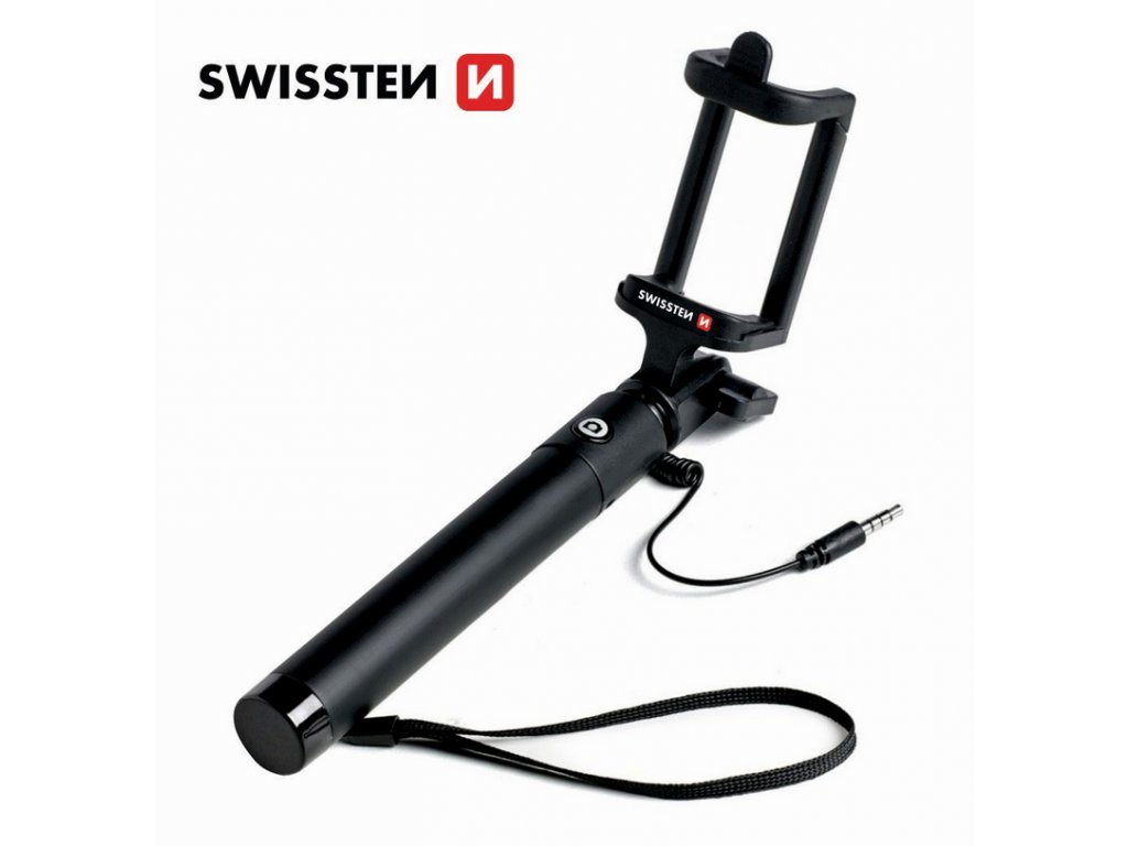 Teleskopická selfie tyč Swissten v moderním designu s kabelem s konektorem 3,5 mm jack. Kompatibilní s iOS i Android. Tlačítko spouště je umístěno na rukojeti. Délka vysunutí až 81 cm. Baleno v blistru Swissten.